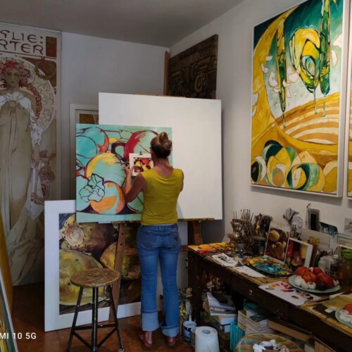 Her artistic profil includes various techniques: theater-/set painting, large dimension wall- and canvas painting, trompe-l'oeil, reproduction/copies, portrait, landscape using different techniques: tempera, acrylic, oil, watercolours, frescoes.